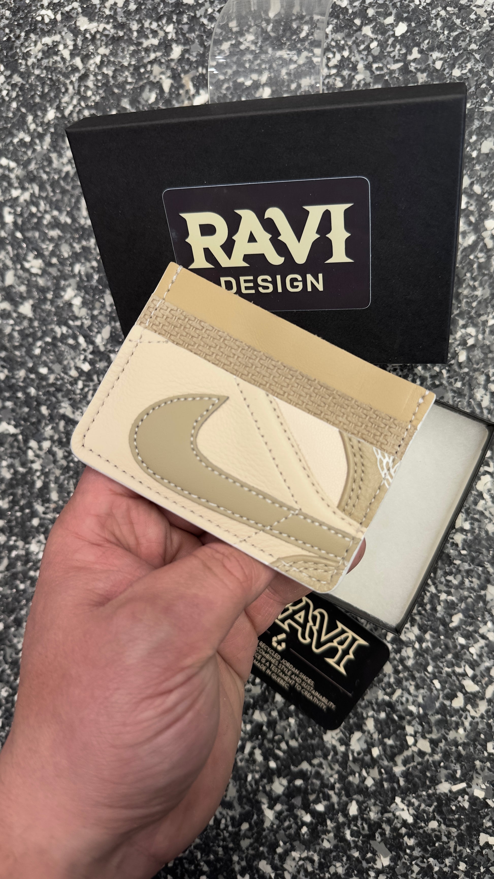 Handmade in Quebec using authentic pieces from iconic sneakers. Each one is unique. Holds around 6 cards. A must-have for sneakerheads who like to carry their style everywhere—even in their pocket.
