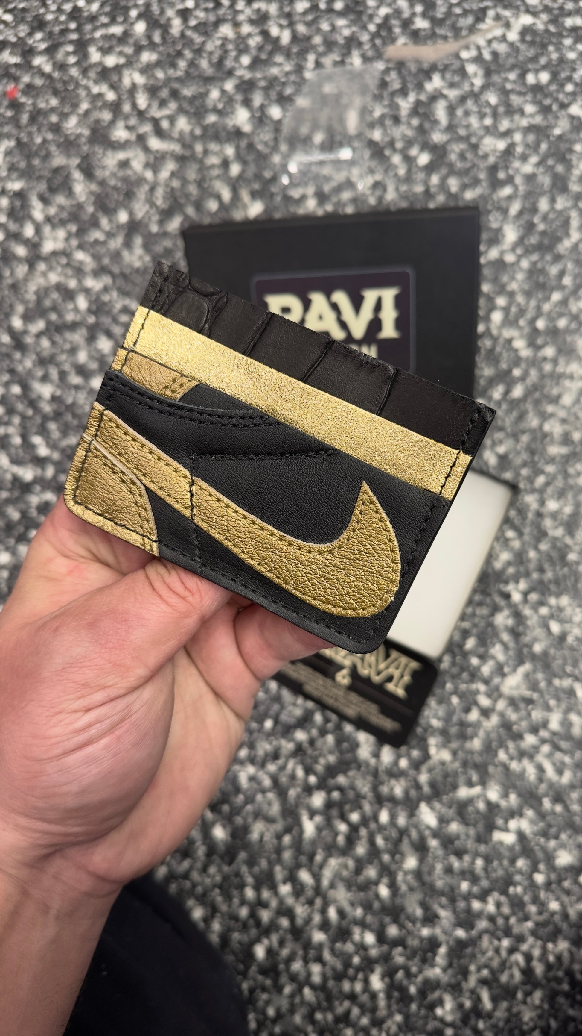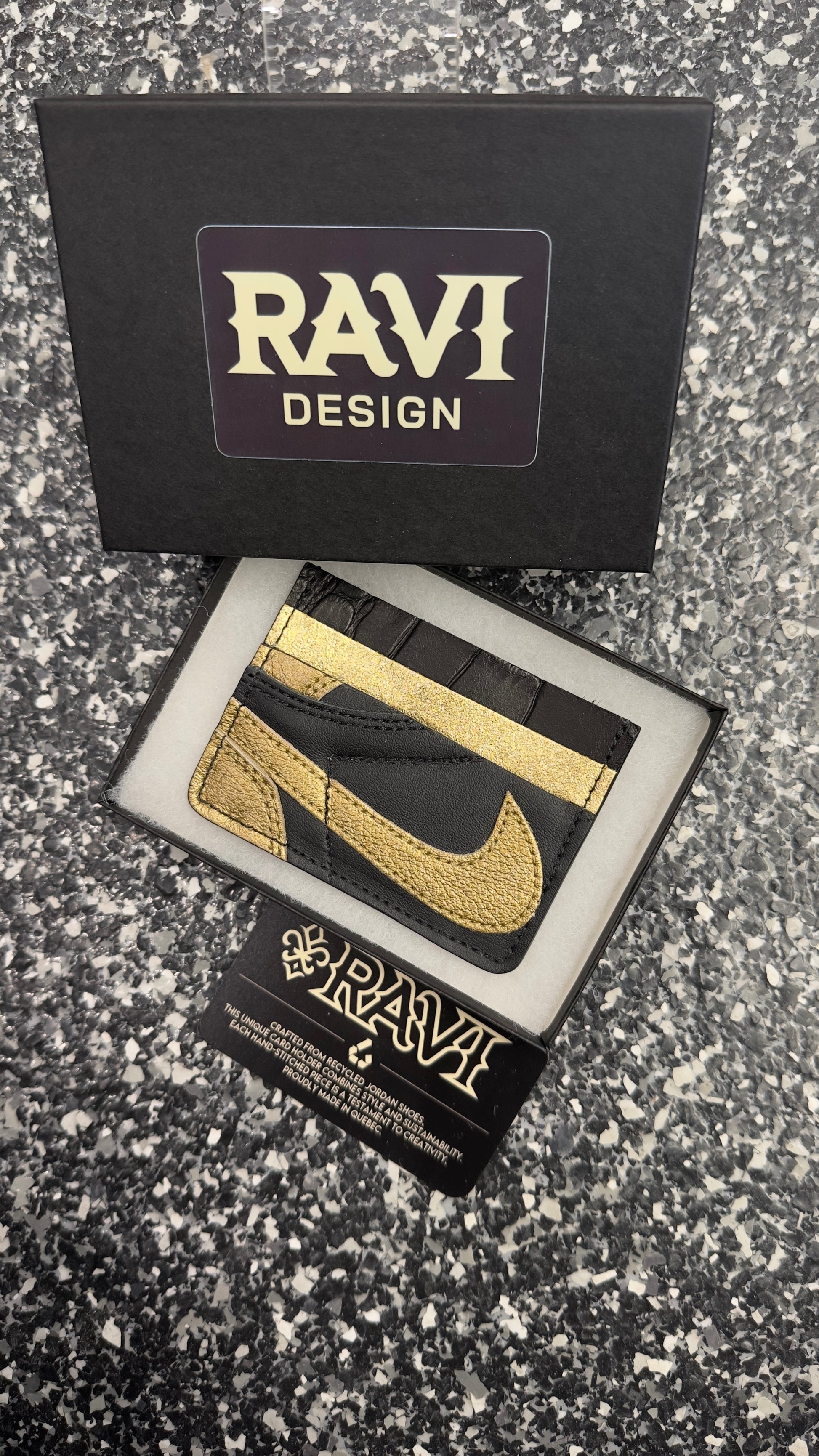 Handmade in Quebec using authentic pieces from iconic sneakers. Each one is unique. Holds around 6 cards. A must-have for sneakerheads who like to carry their style everywhere—even in their pocket.