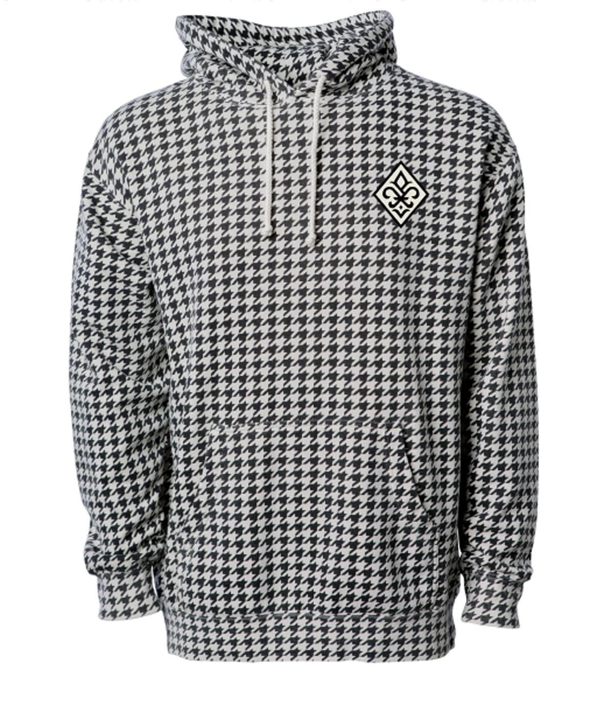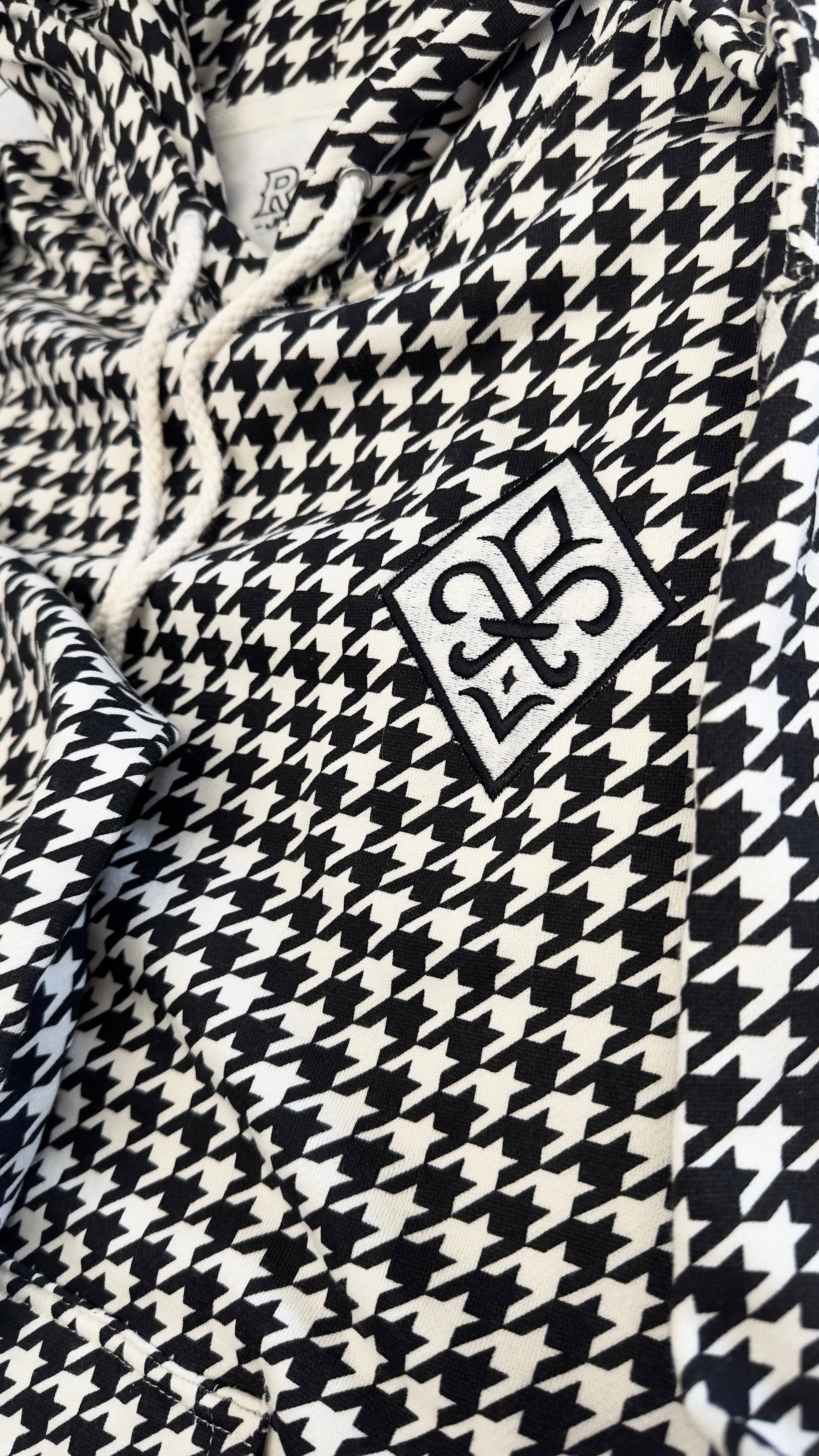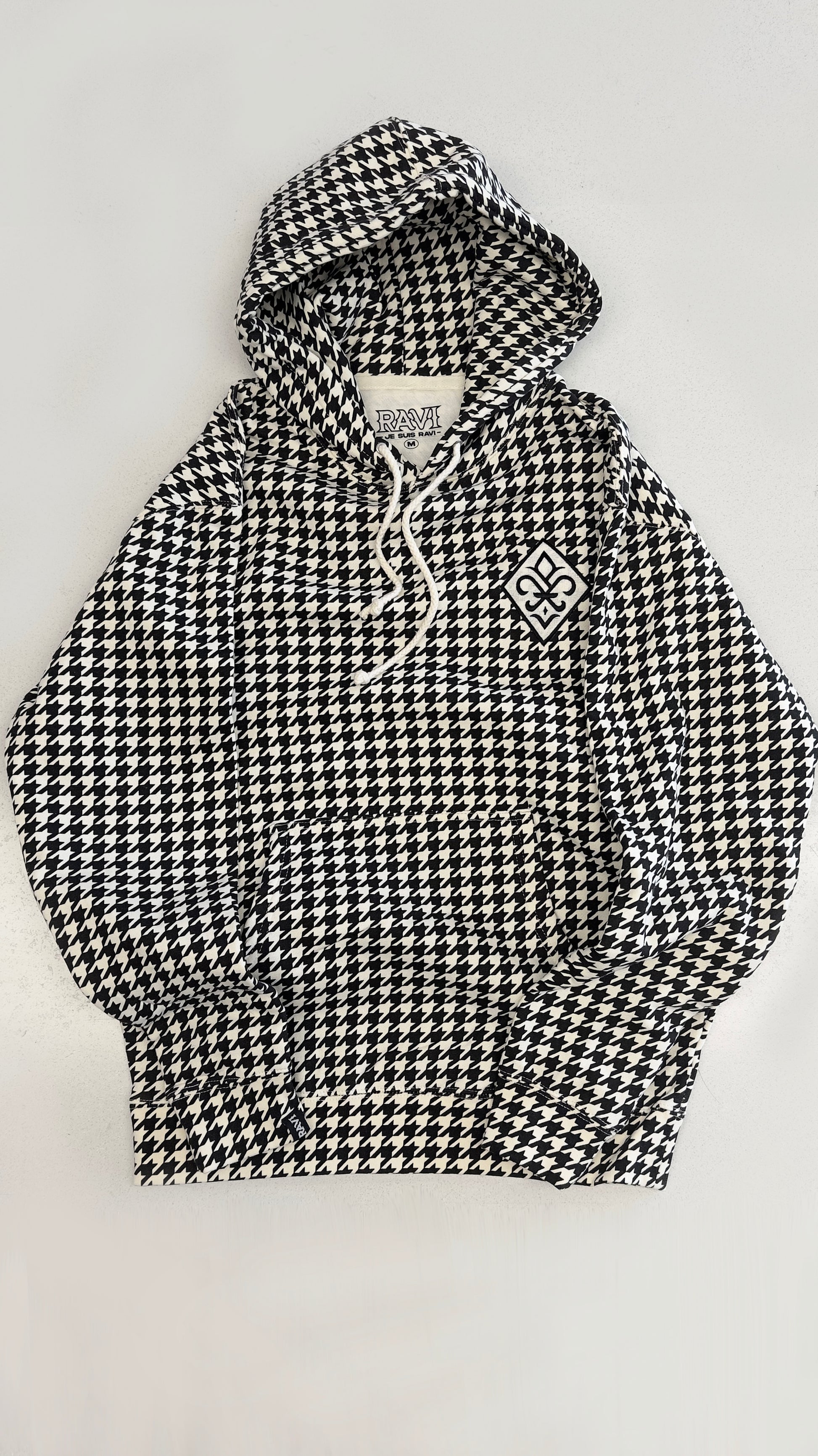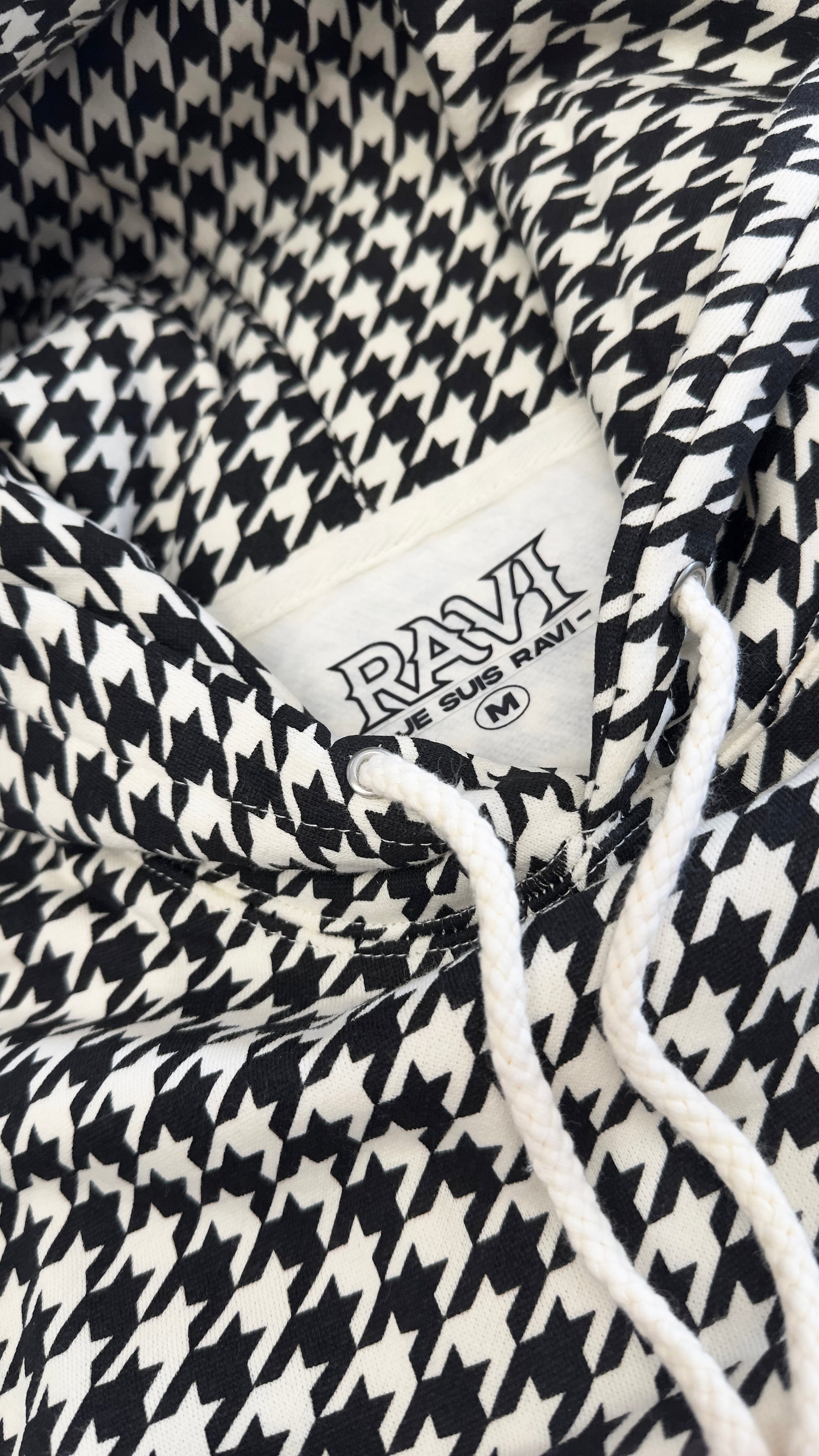 💙 The fleur-de-lys embroidered on the heart, because at Ravi, everything starts from the heart. 🤝 A signature label on the right wrist, visible with every handshake — a symbol of belonging to the Ravi family. 🖤 All set on an elegant houndstooth pattern, in a thick, heavy, high-quality sweatshirt, made to last as long as your style.