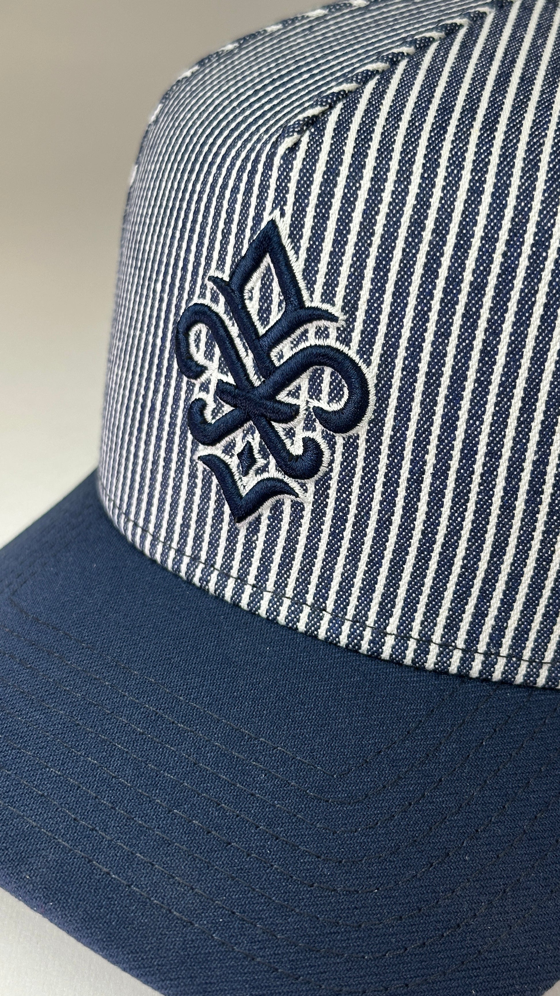 Inspired by the Hickory Stripe pattern from classic railroad worker overalls, this cap blends authenticity with timeless style. The blue and white design pairs perfectly with our white & blue “Yankees” tee, creating a look that’s both classic and sporty. Adjustable, comfortable, and versatile—this cap is built for everyday wear.